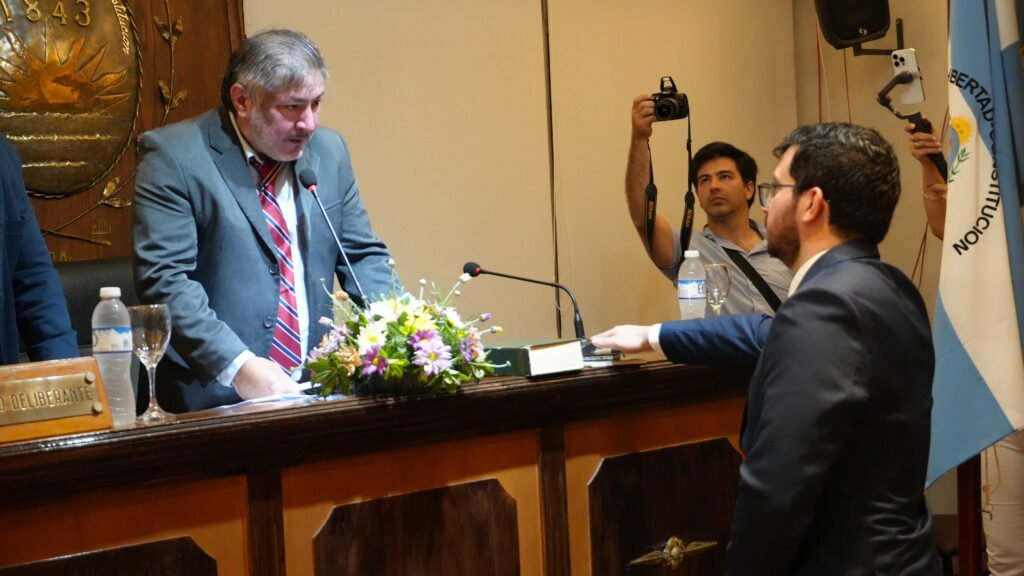 Fernando Núñez juró como concejal de Paso de los Libres este martes 9 en un acto que tuvo lugar frente al Palacio Municipal. Cuando llegó su turno, extendió su mano hacia la Constitución Nacional y de manera contundente remarcó su compromiso “con cada libreño”.